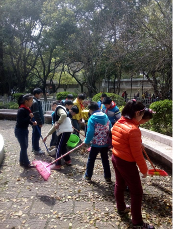 3月24日,天气格外晴朗,四年级的孩子们在各班班主任的带领下怀着无比激动的心情来到师大红场附近清扫落叶。真可谓是人多力量大,虽然落叶如同雪花片那般络绎不断,但这丝毫没有动摇孩子们学雷锋的劲头与热情,他们有的挥舞着扫把扫落叶,有的搬来垃圾桶运落叶,还有的用手捡落叶,忙得不亦乐乎!虽然手脏了,腰酸了,腿麻了,但是孩子们个个脸上都洋溢着幸福的笑容。孩子们都说:“能为美化师大校园出一份力真开心,学雷锋真好!”