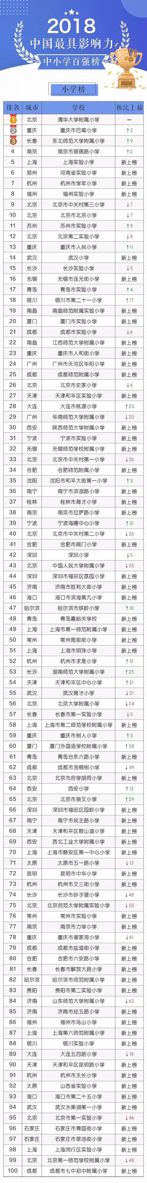 据悉,该榜单是由拥有全国近20万精英校长群体的新媒体平台“校长会”项目团队推出。根据媒体关注报道、教师教科研成果、学校及教师获奖情况、学生全国性获奖情况、学业水平社会口碑、办学内涵表达传播等六个维度对全国近2000所中小学校进行调研考评,经过多轮对标打分和反复核查审定,具有权威性和客观性。