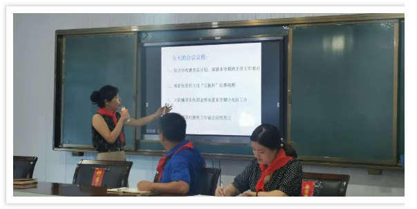 接着,结合学校德育总计划,秦主任对新学期班主任德育工作进行安排和说明,并提出“冗杂事务简单化,分工合作减负担”的班主任工作方针。