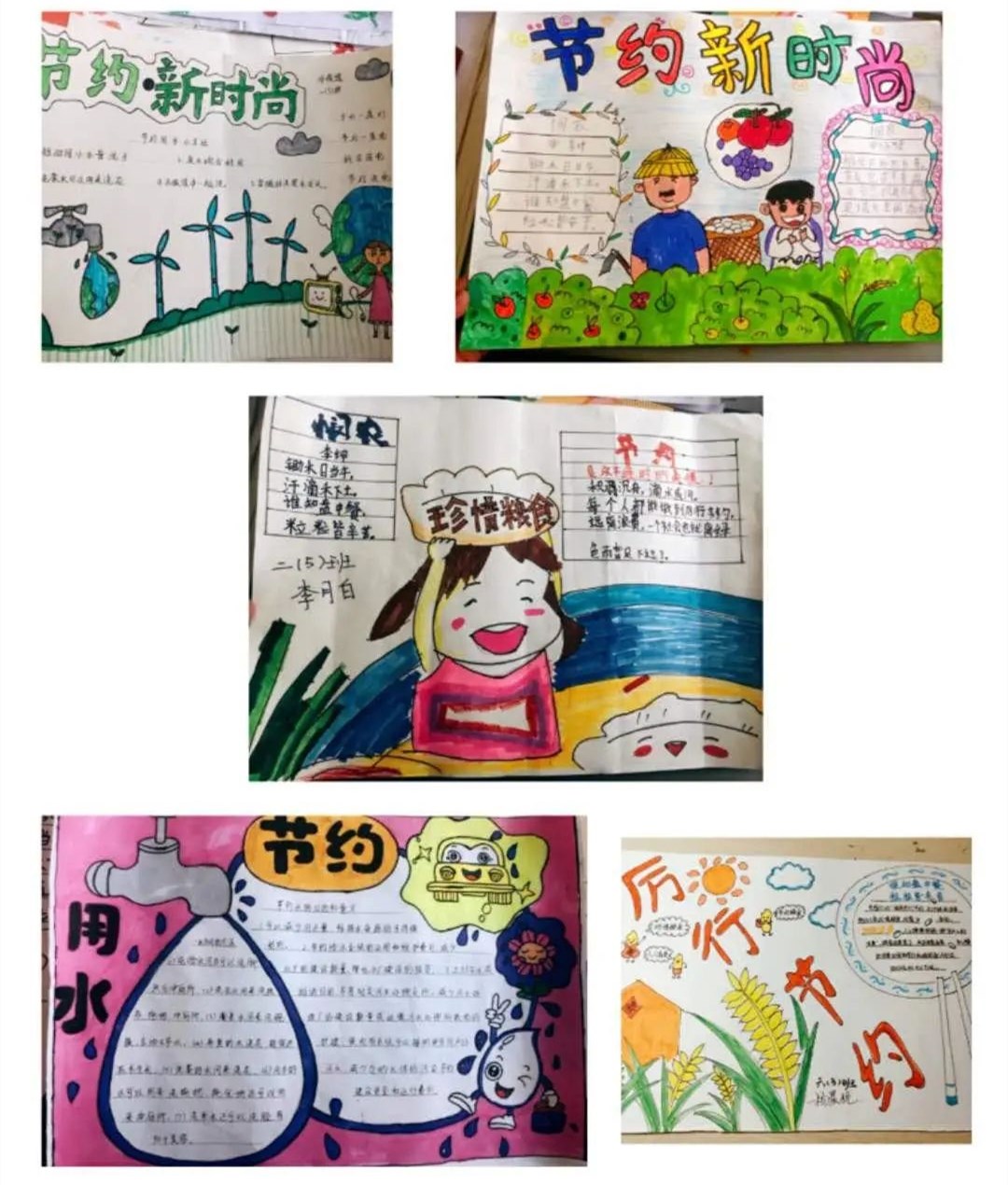 倡议一发出,全校师生立即采取行动,从自己做起,和家人一起,从一餐一饭开始,开展了设计张贴创意手抄报,饭后光盘不剩菜、记录身边节俭好人好事、写读后感等活动,用实际行动向身边人宣传厉行节约、杜绝浪费知识内容。