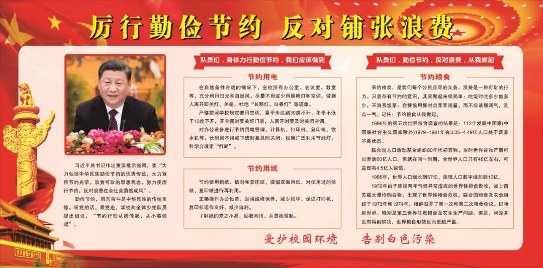 “一粥一饭,当思来处不易;半丝半缕,恒念物力维艰”,近期习近平总书记对制止浪费行为作出重要指示,要求切实培养节约习惯,在全社会营造浪费可耻、节约为荣的氛围。对此,18jav 少先队大队部积极贯彻落实习近平总书记指示,开展了“厉行节约你我同行”为主题的系列活动。