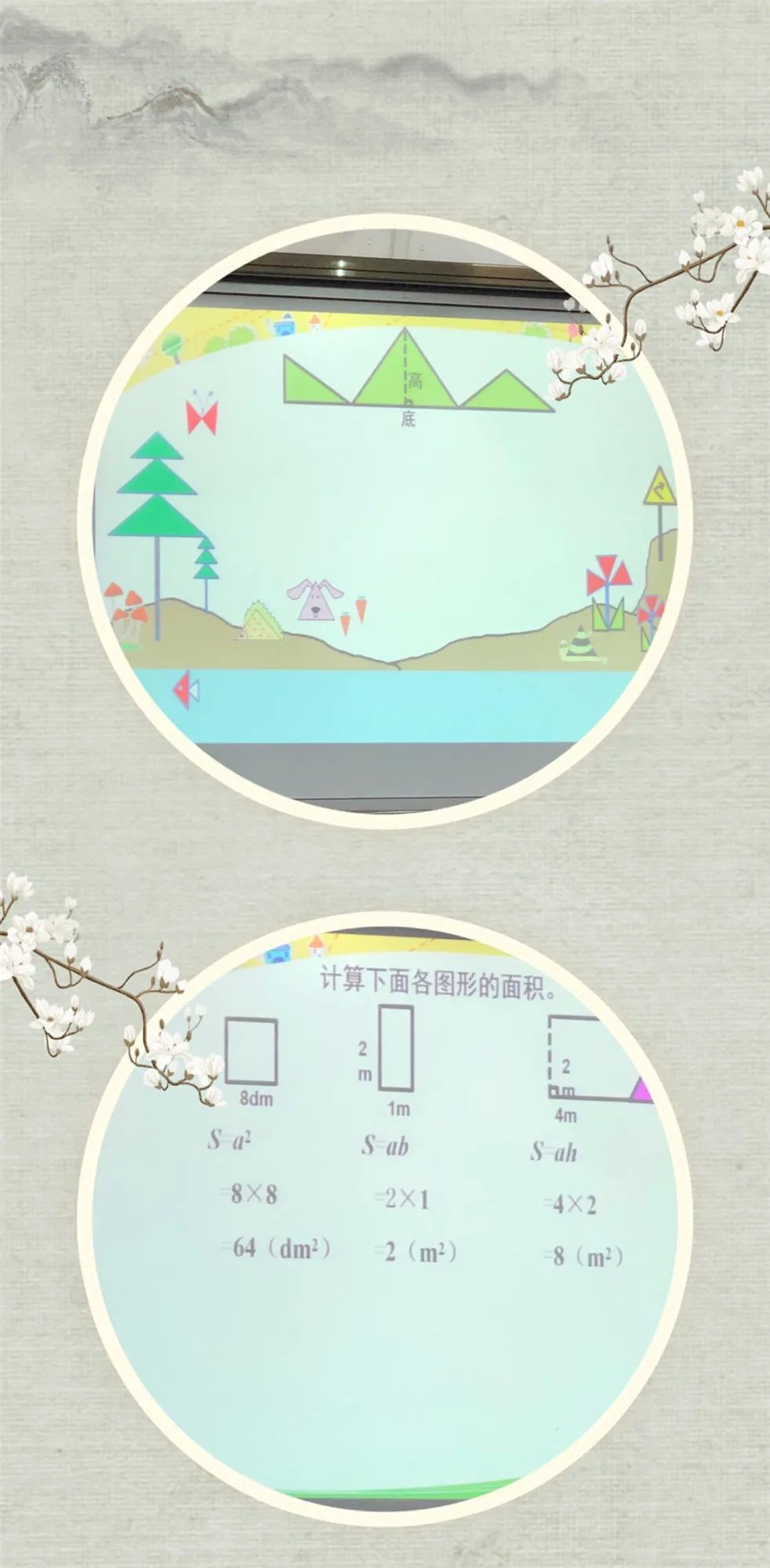 巩固练习,具有梯度,层层递进,由易到难,非常具有代表性。尤其是一道思考题,让孩子求三角形的面积,孩子集体错误,因为没有找到对应的底和高,导致认知冲突,让孩子今天学过的内容得到升华。