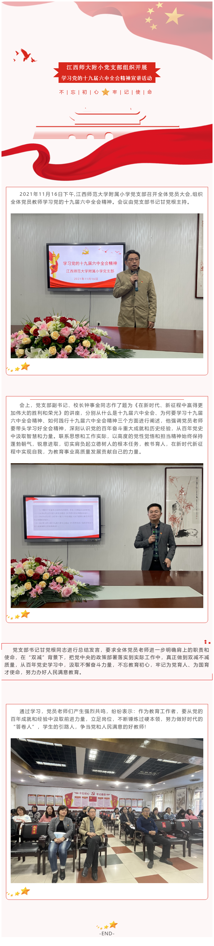 江西师大附小党支部组织开展学习党的十九届六中全会精神宣讲活动