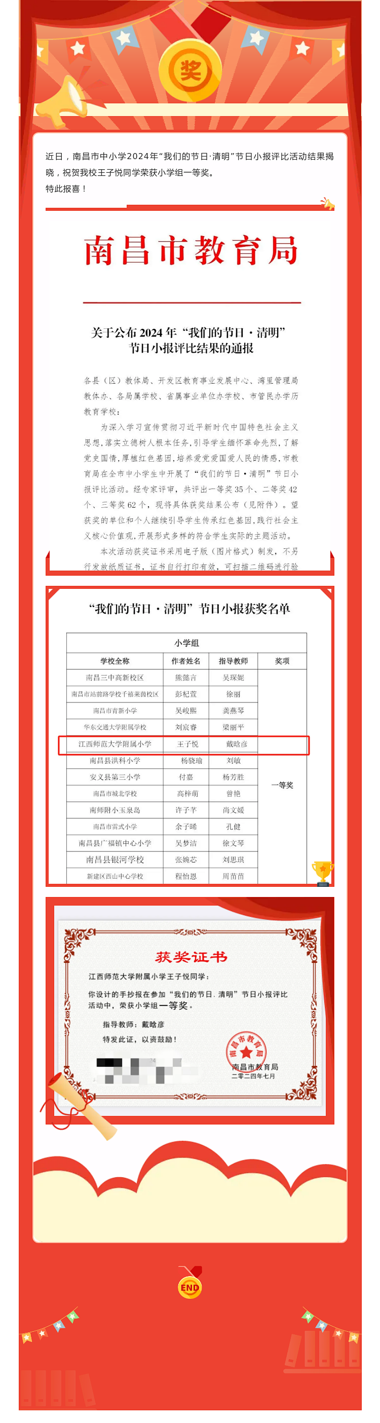 喜报|18jav 王子悦同学获南昌市中小学节日小报评比活动一等奖