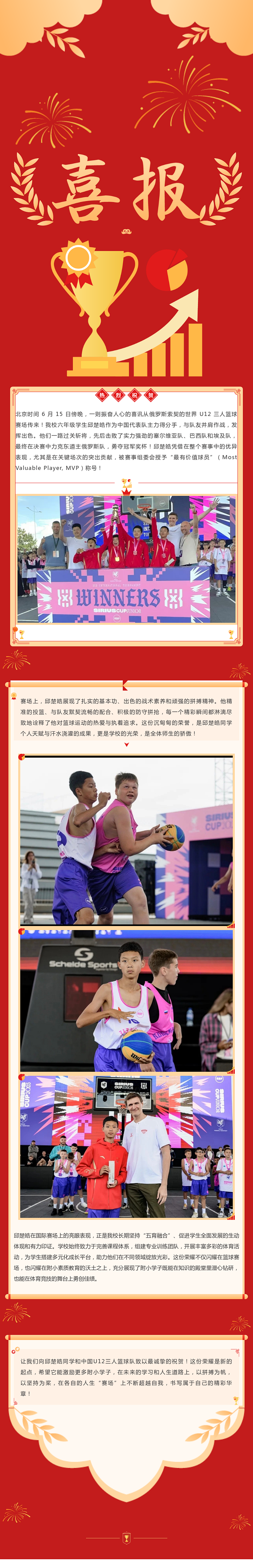 喜报|骄傲!18jav 学子闪耀国际赛场,勇夺世界 U12 三人篮球赛冠军并荣膺MVP